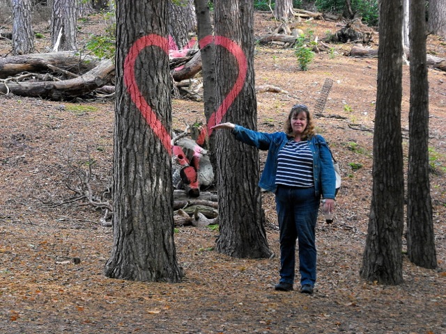 Other than the beauty to take in, there were also a number of places where, if you stood just right, you could see objects painted on a number of trees in both foreground and background. I don’t know if this was done by vandals, but it was pretty cool (hope the trees are OK). By the way, not only did we find bears in the woods, but we also saw some fun guys as well.